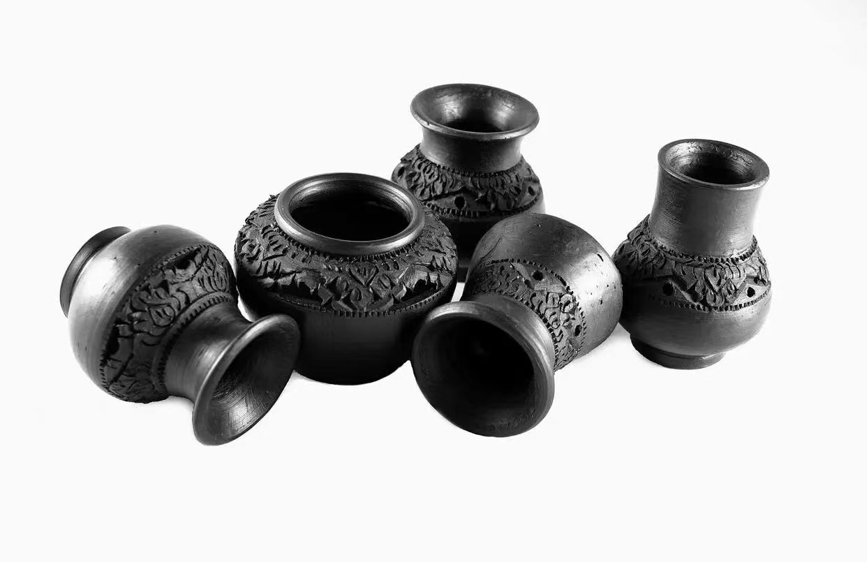 三、晋西黑陶是典型的民间工艺,不象其他陶瓷那样成为艺术品,而被人们所喜爱与收藏。