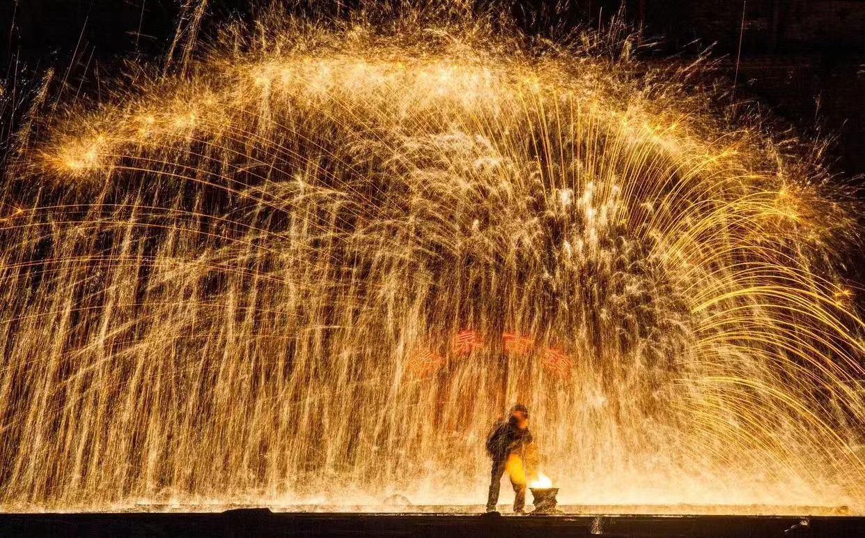 3、“确山打铁花”作为国家级非物质文化遗产传承保护项目,在表演中既有传统特色又有创新内容。